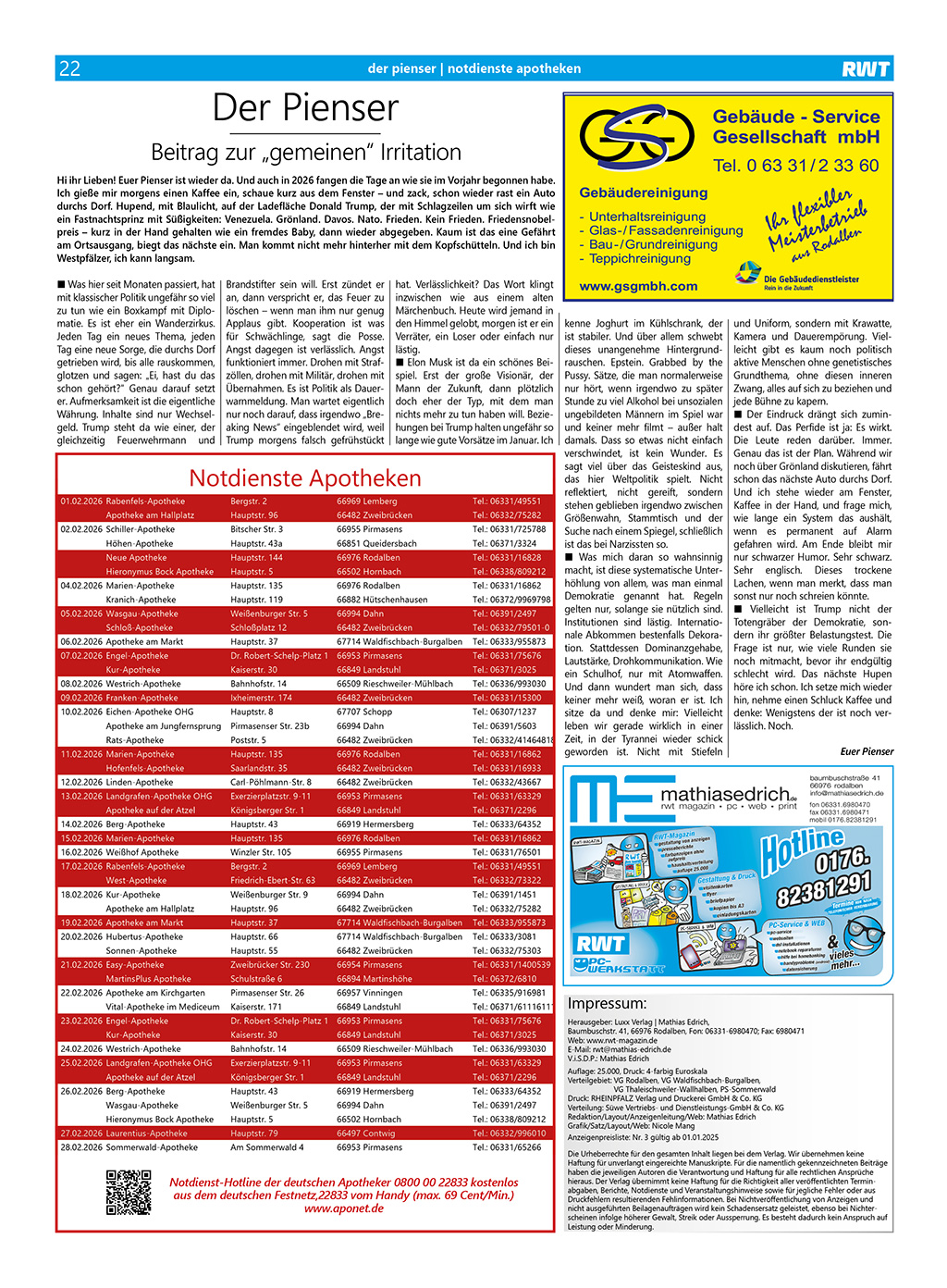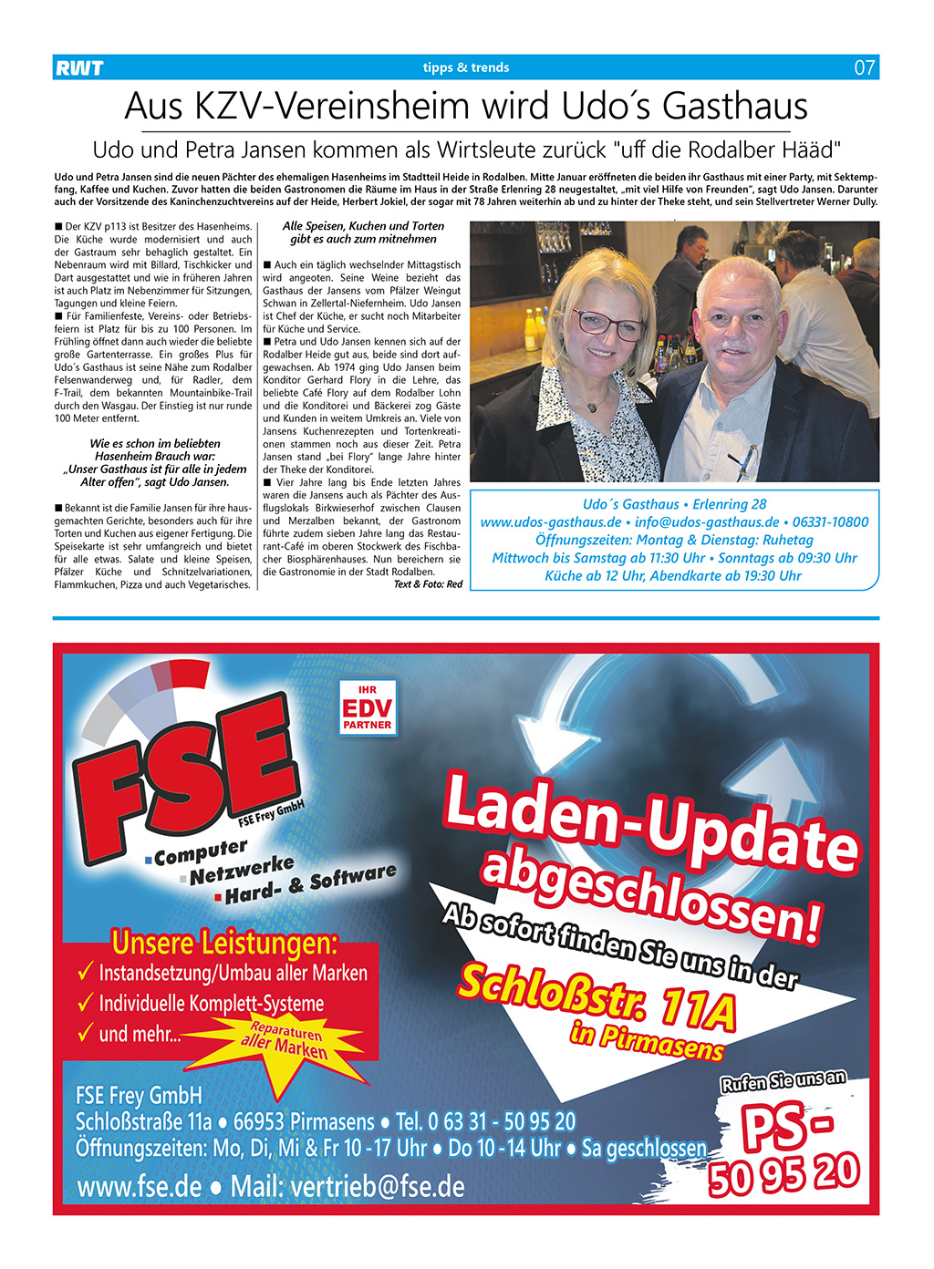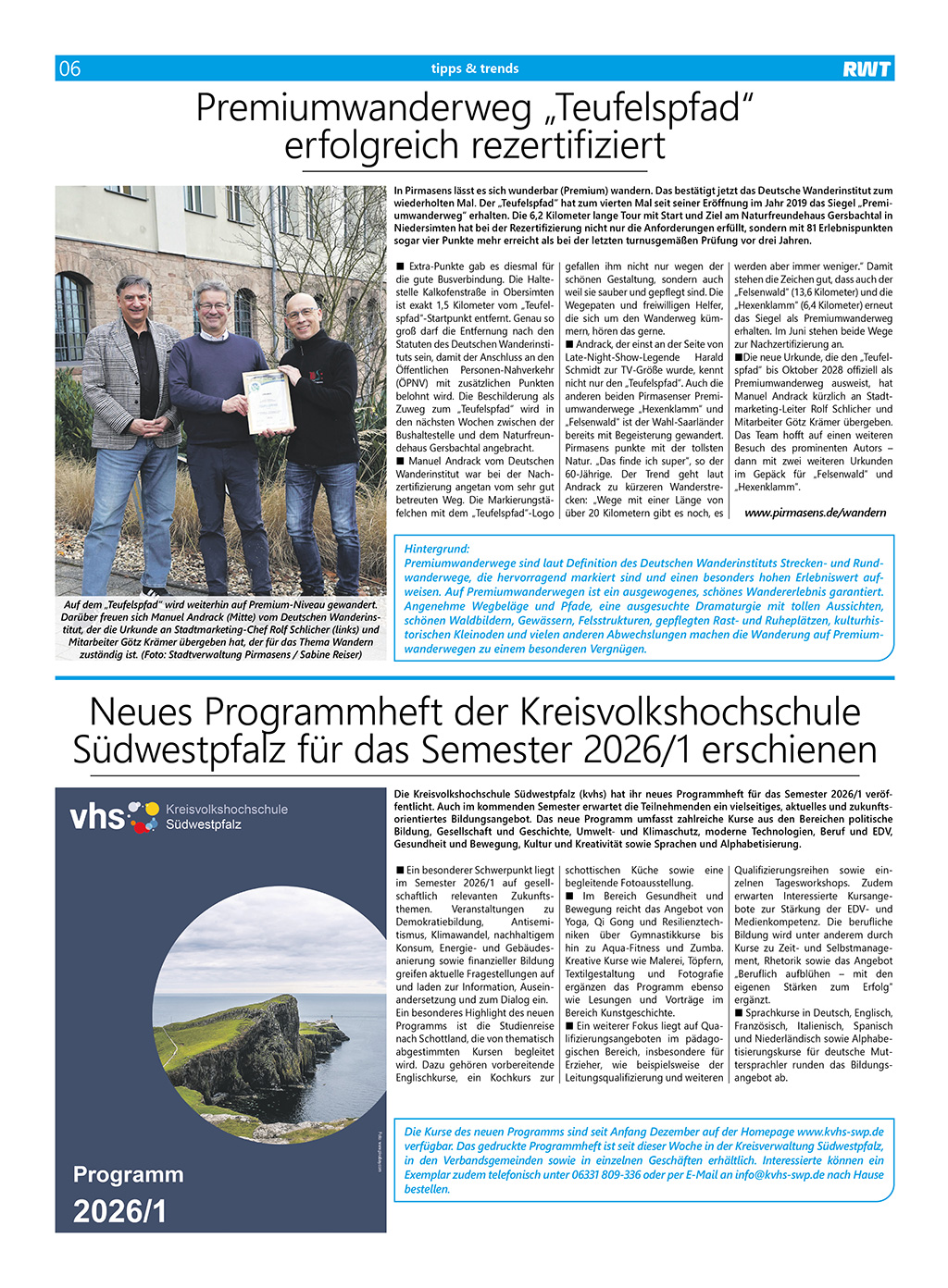 RWT Magazin, Baumbuschtstr. 41, 66976 Rodalbenoder eine E-Mail an gewinnen@rwt-magazin.de